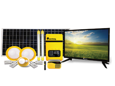 Le Kit Djabarani propose un accès de qualité à la télévision via un kit solaire individuel avec un panneau, une batterie et des accessoires (ampoules, télévision ...)